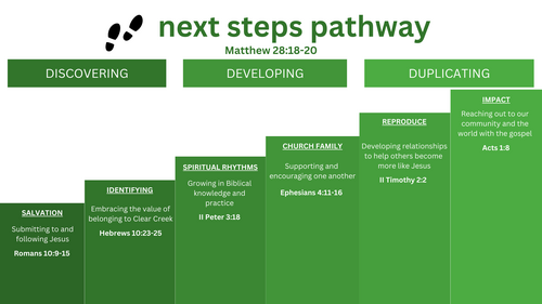 Clear Creek Church exists to Glorify God and Make Disciples by Growing a Thriving Faith Community Full of Healthy Families.